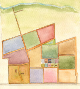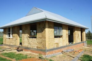 Cowra Council still imposed a rule the design of the development so that residential development would not take place all over the place, but rather in one part of the subdivision. The idea is that the integrity of the agricultural land needed to be protected. The resulting “village” in the middle of the farm has now become an asset to the community. The ten 0.5 hectare (60m x 80m) house blocks are like an “eco village” with owner-built houses and families who are great friends and organic farming collegues. Many, but not all, of the house blocks adjoin the farm blocks.